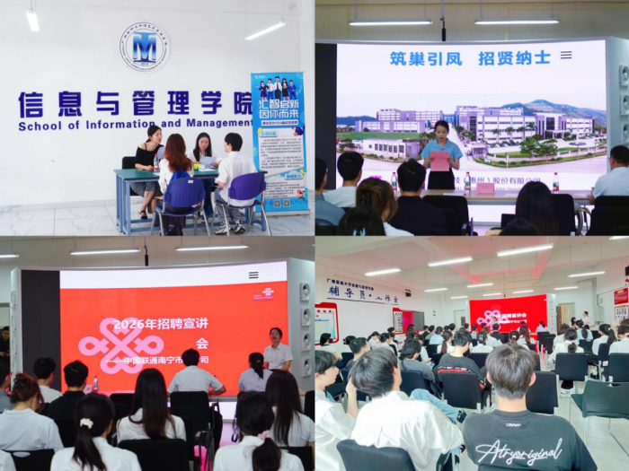为深入贯彻落实教育部“春季促就业攻坚行动”工作要求,紧抓春季就业工作攻坚黄金期,4月14日,博天堂 在武鸣校区A8-1-101顺利开展“暖心护航,职启新程”—2026届毕业生春季专场招聘会。学院院长何慧敏、党委副书记蒋鹏、学工办主任何锡嘉、信息系主任张茂胜、学院辅导员及60余名学生参加本次招聘会。